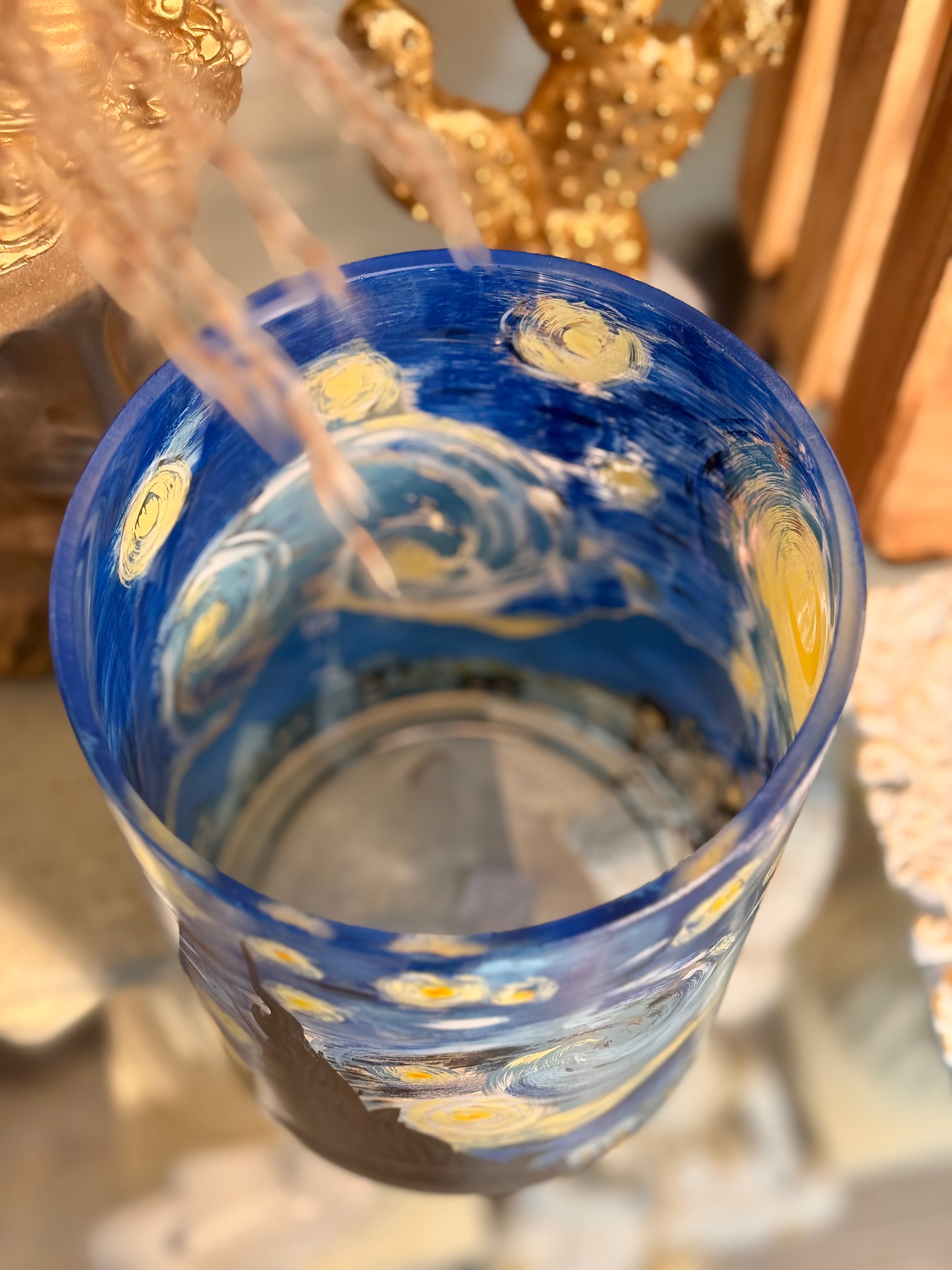 Starry Night Hand-painted Cylinder Vase - Van Gogh Inspired Art Glass