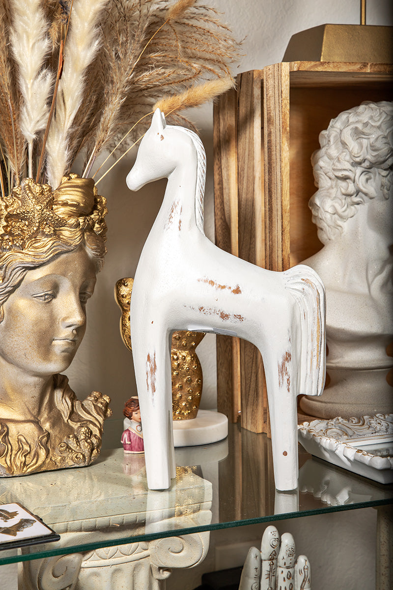 White Distressed Wooden Scandinavian Horse Sculpture - Western & Shabby Chic Home