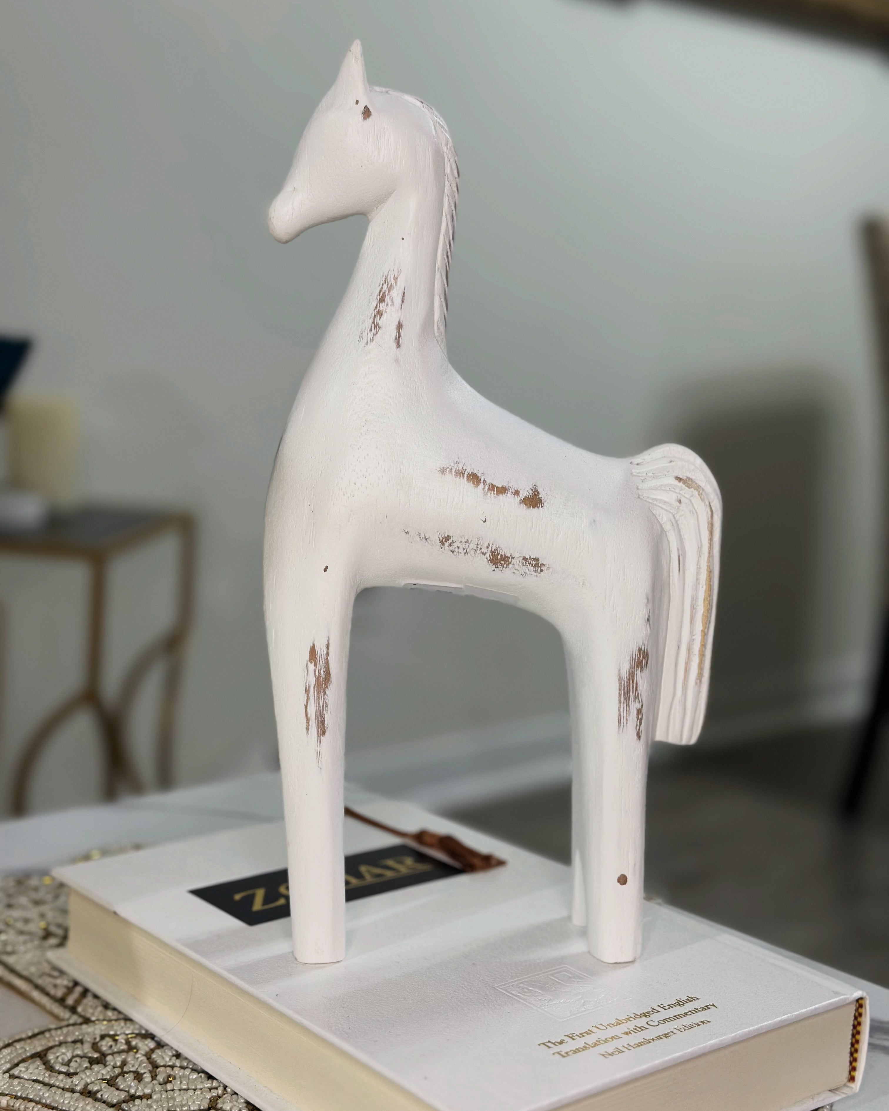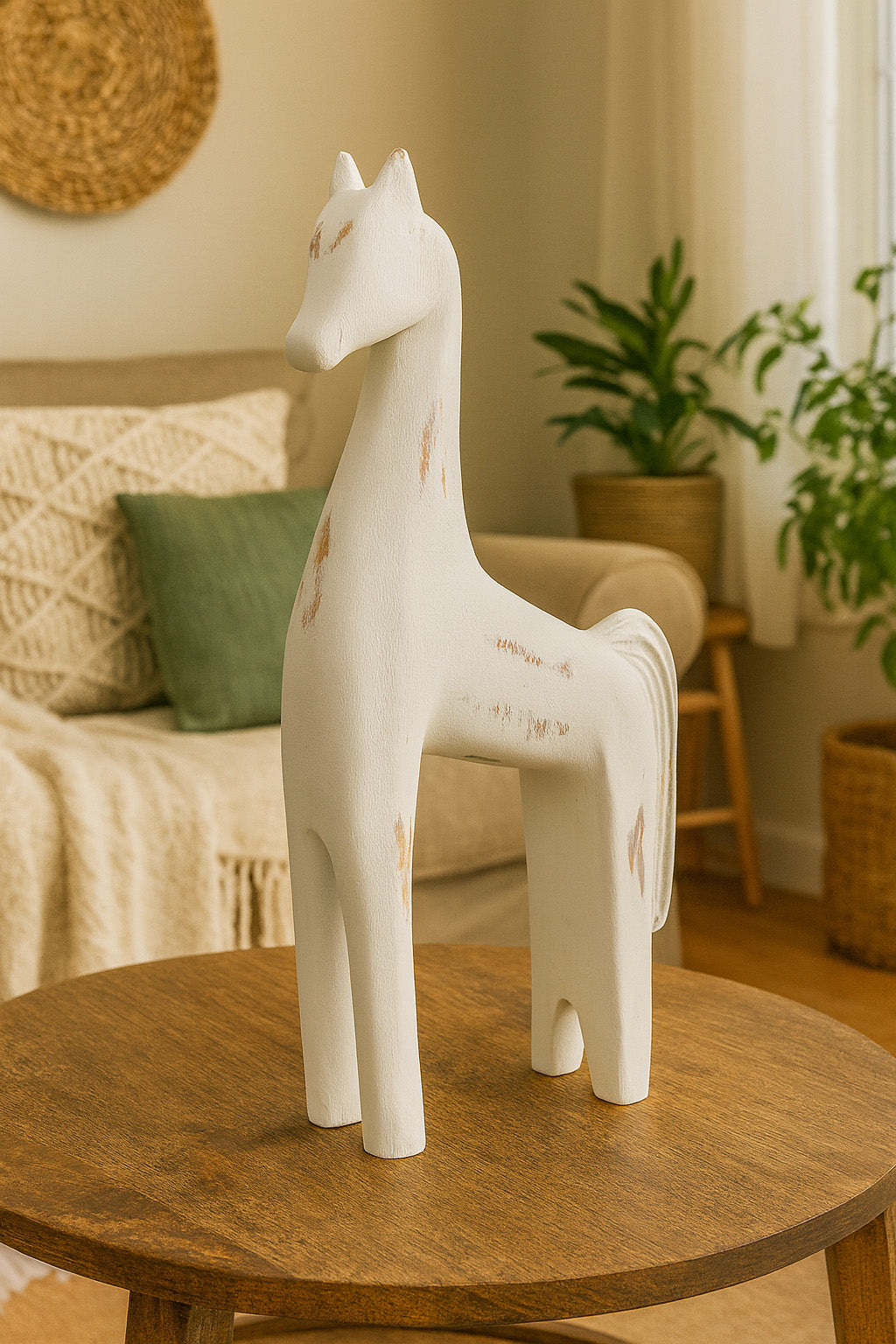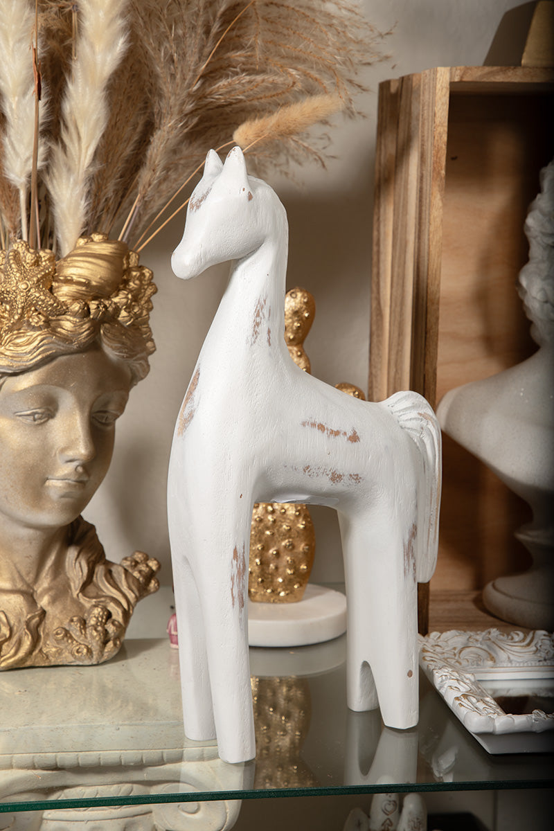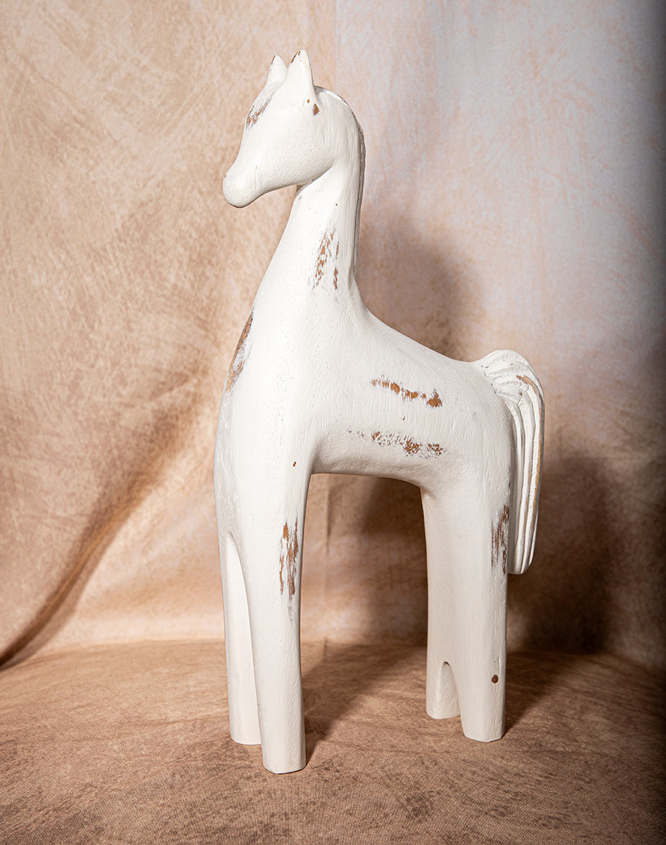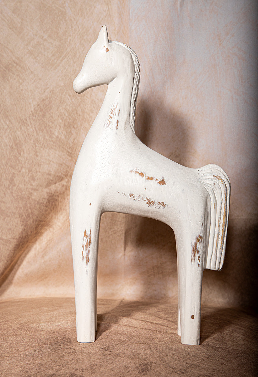 Capture timeless rustic charm with this handcrafted wooden horse sculpture, designed for lovers of western and shabby chic interiors. Finished in a soft distressed white, it evokes the simplicity of Scandinavian design with a hint of vintage farmhouse character.