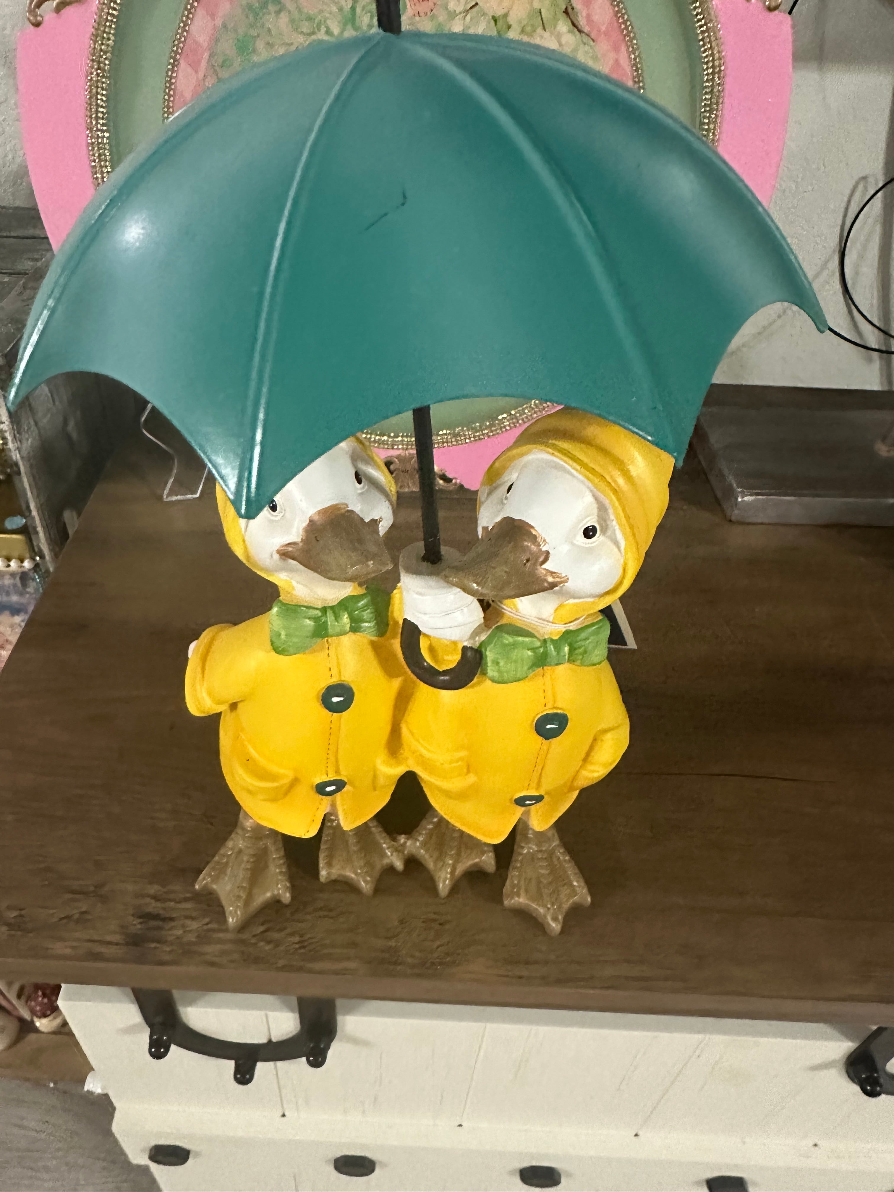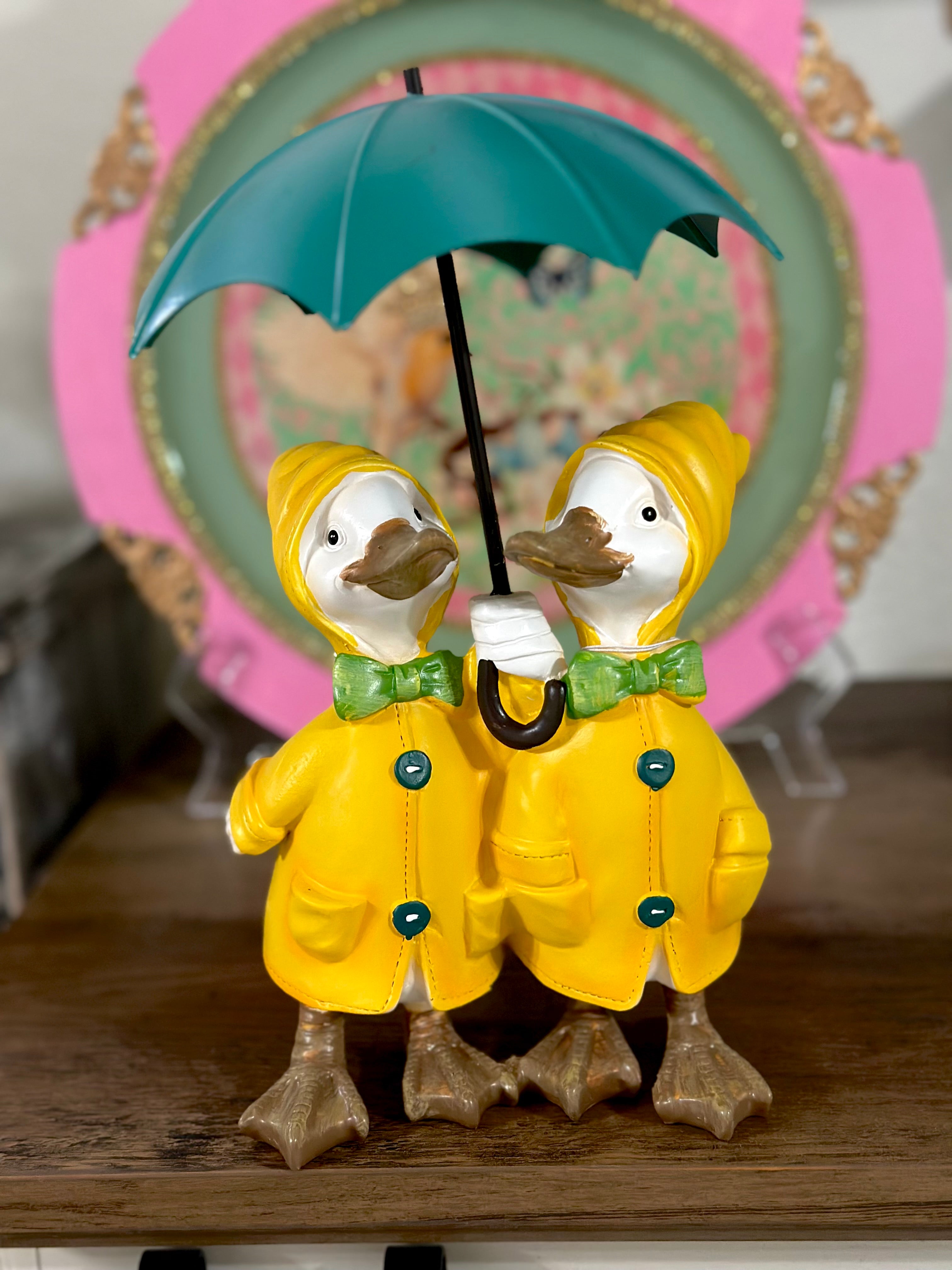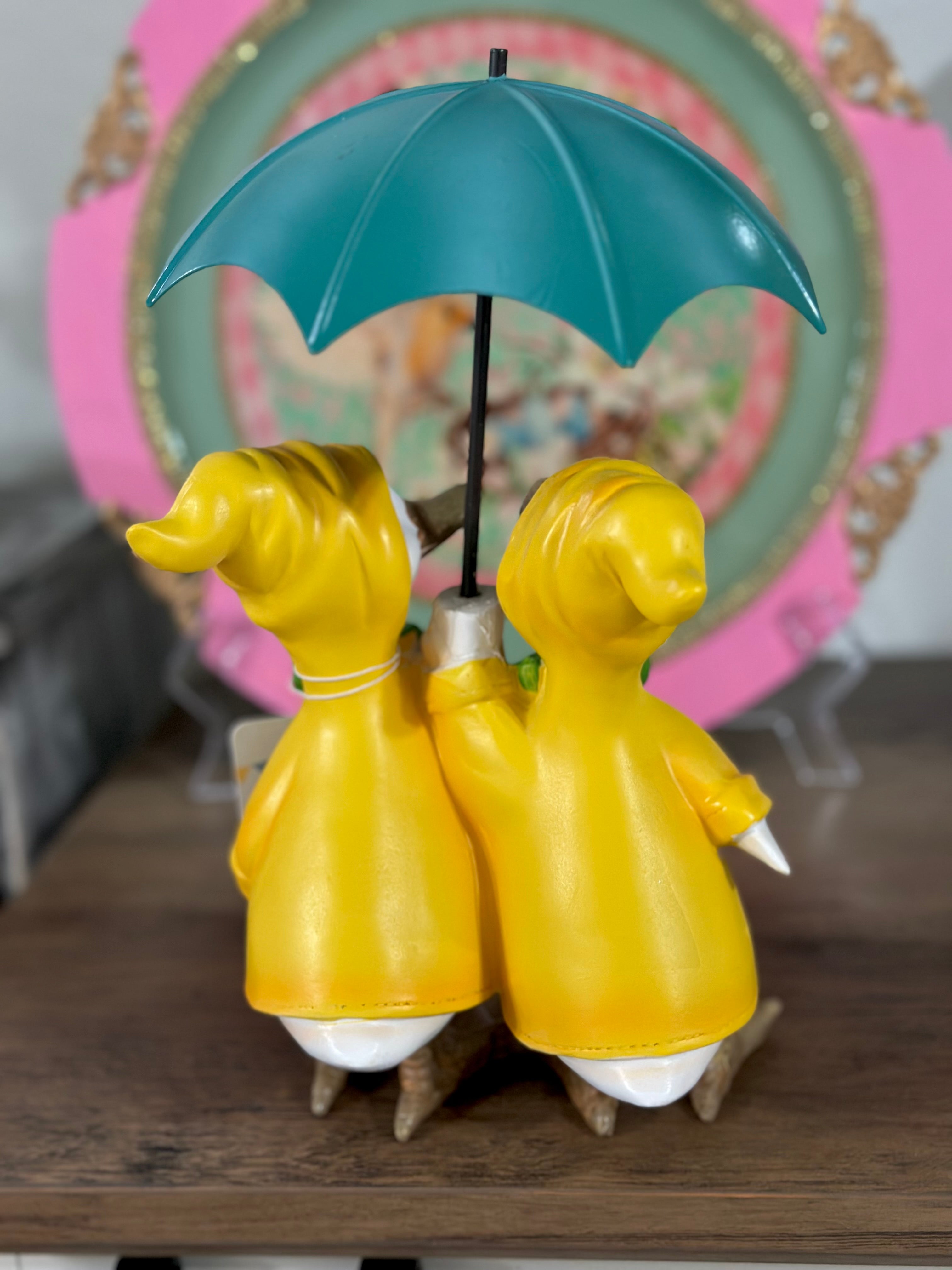 Ducks Wearing Yellow Raincoat & Holding Green Umbrella ~ Home Decor