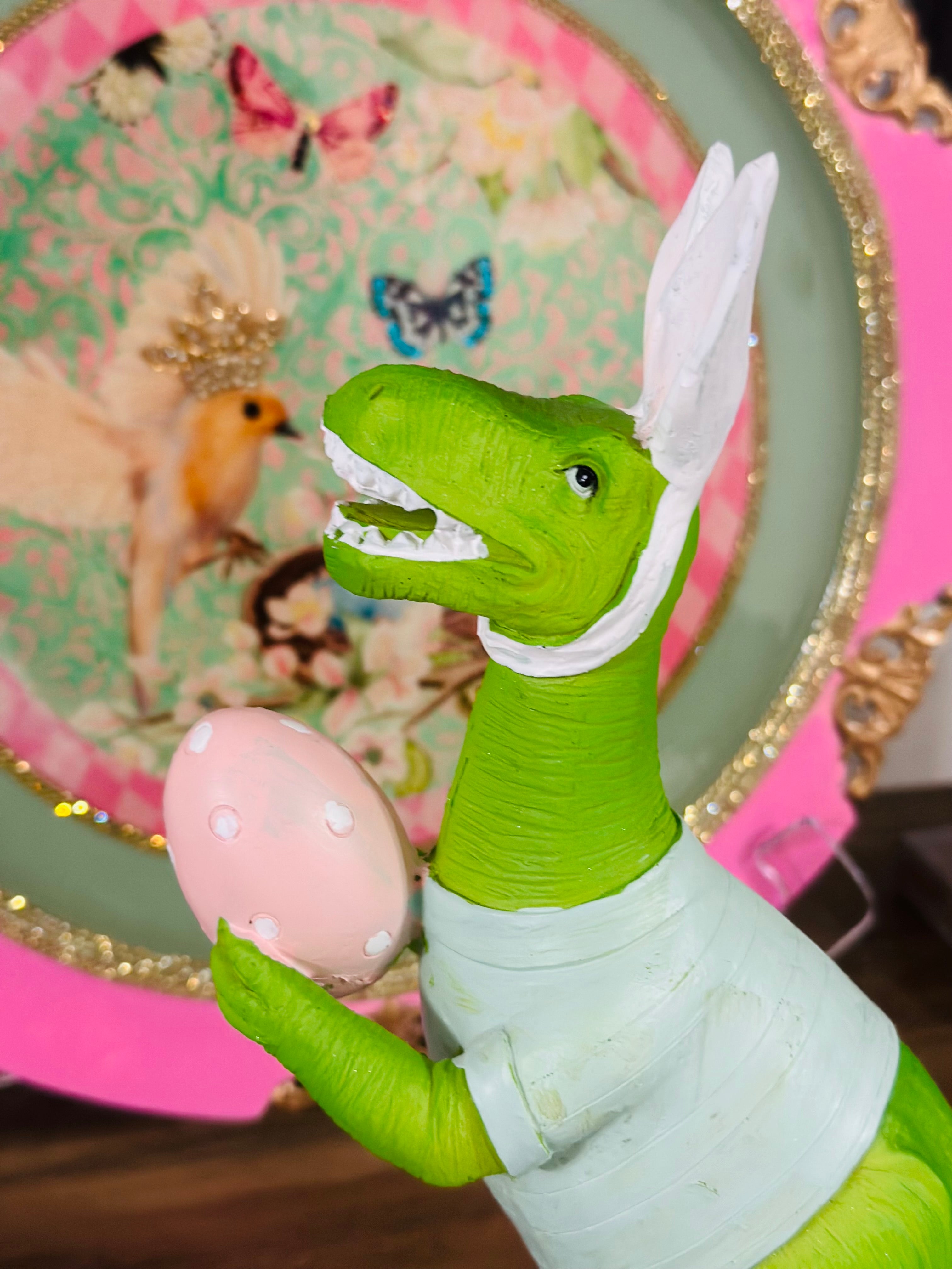 Easter T-rex Dinosaur Holding Polka Dot Egg – Whimsical Decor