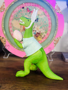 Add some fun and whimsy to your Easter decor with this charming dinosaur figurine. Perfect for any adult, this art deco style figurine features a playful green dinosaur holding a pink polka dot egg. Crafted from resin, this figurine is sure to be a conversation starter among your guests. The perfect addition to any home decor, this Easter dinosaur figurine is a great way to celebrate the holiday season. With its unique combination of animals and dinosaurs, this sculpture is a must-have for any collector. Whether you're looking for a fun and quirky addition to your home or a thoughtful gift for a loved one, this figurine is sure to delight. Approximately: 7”x4”x10”  |