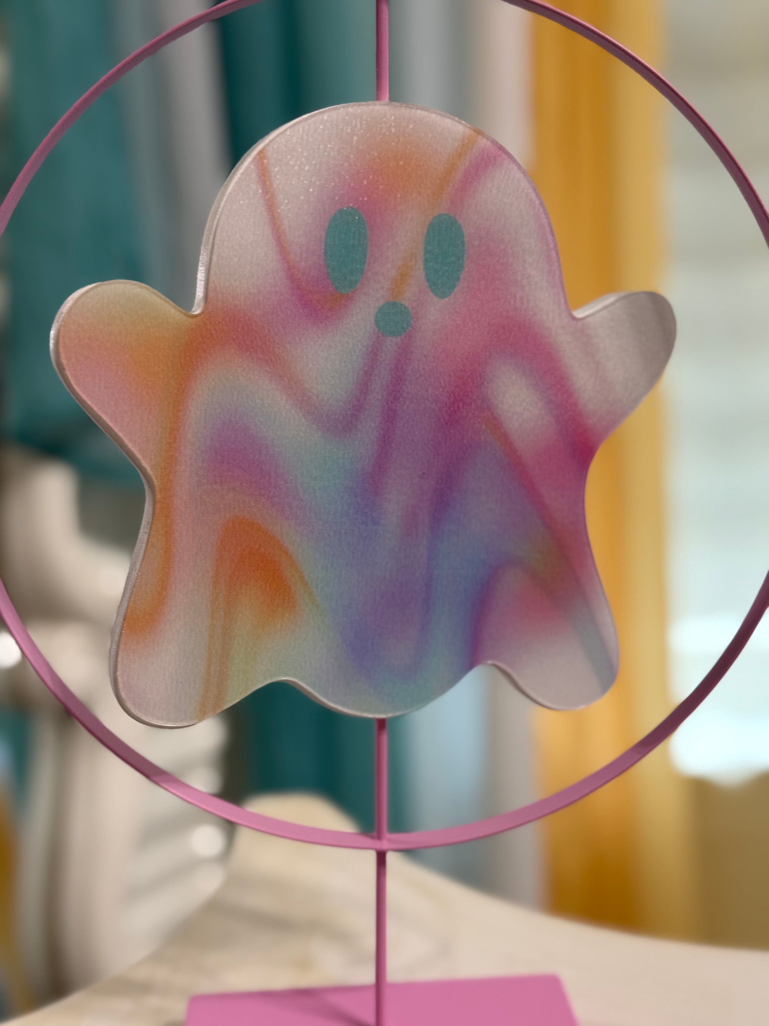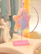 Holographic Iridescent Pink Ghost Spinning Figurine Halloween