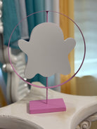 This Ghost Spinning Figurine is a whimsical addition to your Halloween decor, featuring a holographic pink design that adds a fun and festive touch to your home. The spinning ghost figurine captures the essence of the holiday season with its playful subject and bright pink color, making it a unique and eye-catching collectible for any Halloween enthusiast.