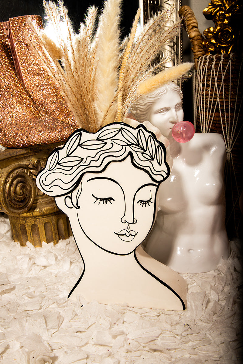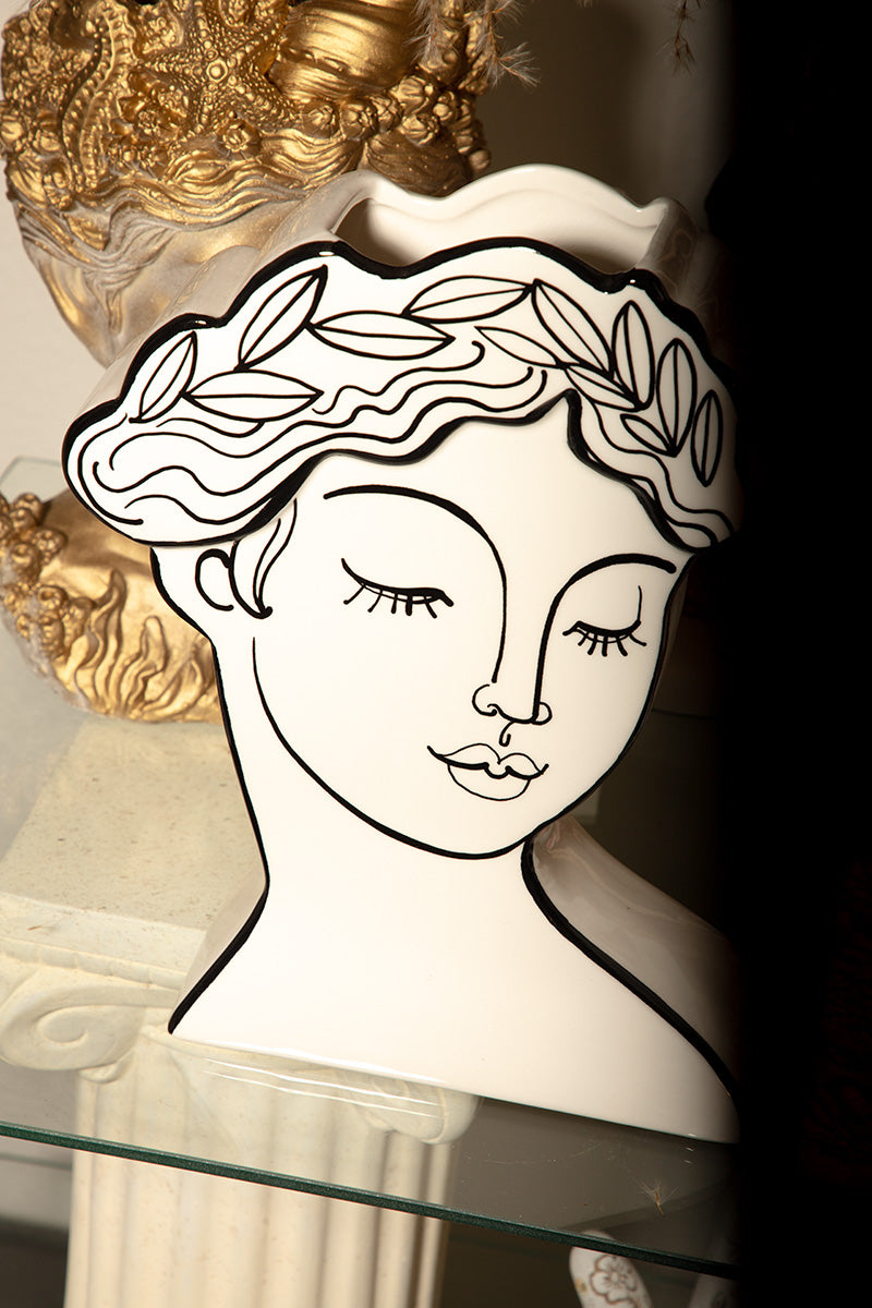 Greek Goddess Line Art Vase - Modern Minimalist Ceramic Bust Planter