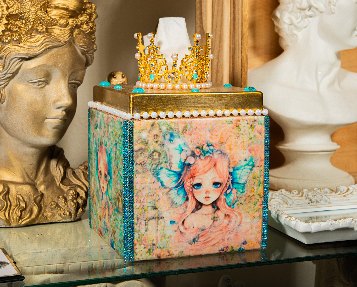 Designed to bring both function and fantasy to your vanity, boudoir, or powder room, this decorative tissue box is not just home décor — it’s a small-scale sculpture of modern mythology, blending luxury and imagination with unapologetic theatrical flair.