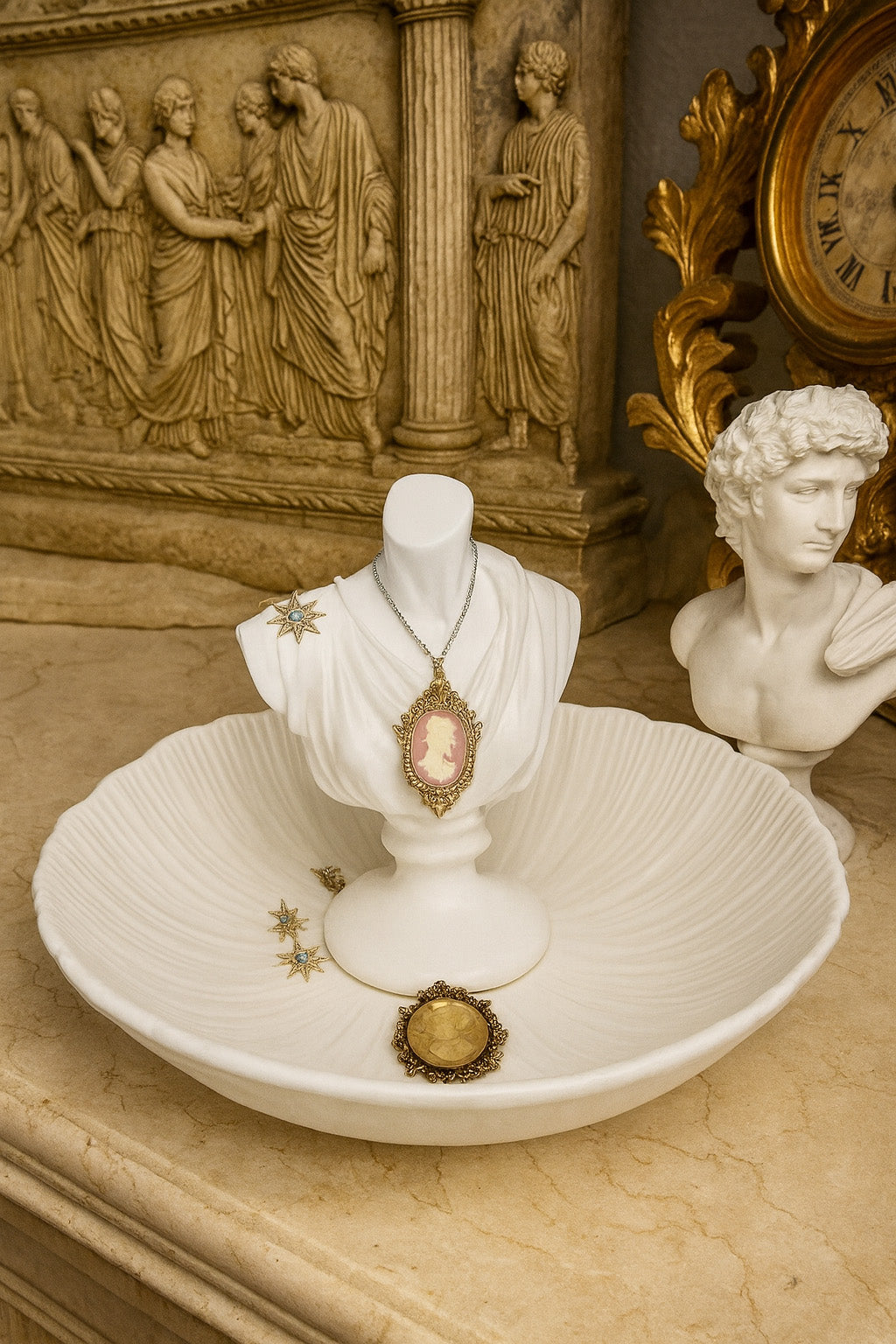 Its large, rippled bowl design makes it both functional and symbolic — ideal as a centerpiece, fruit bowl, or jewelry display. The addition of the bust creates a poetic focal point, transforming an everyday vessel into a statement of art and storytelling.