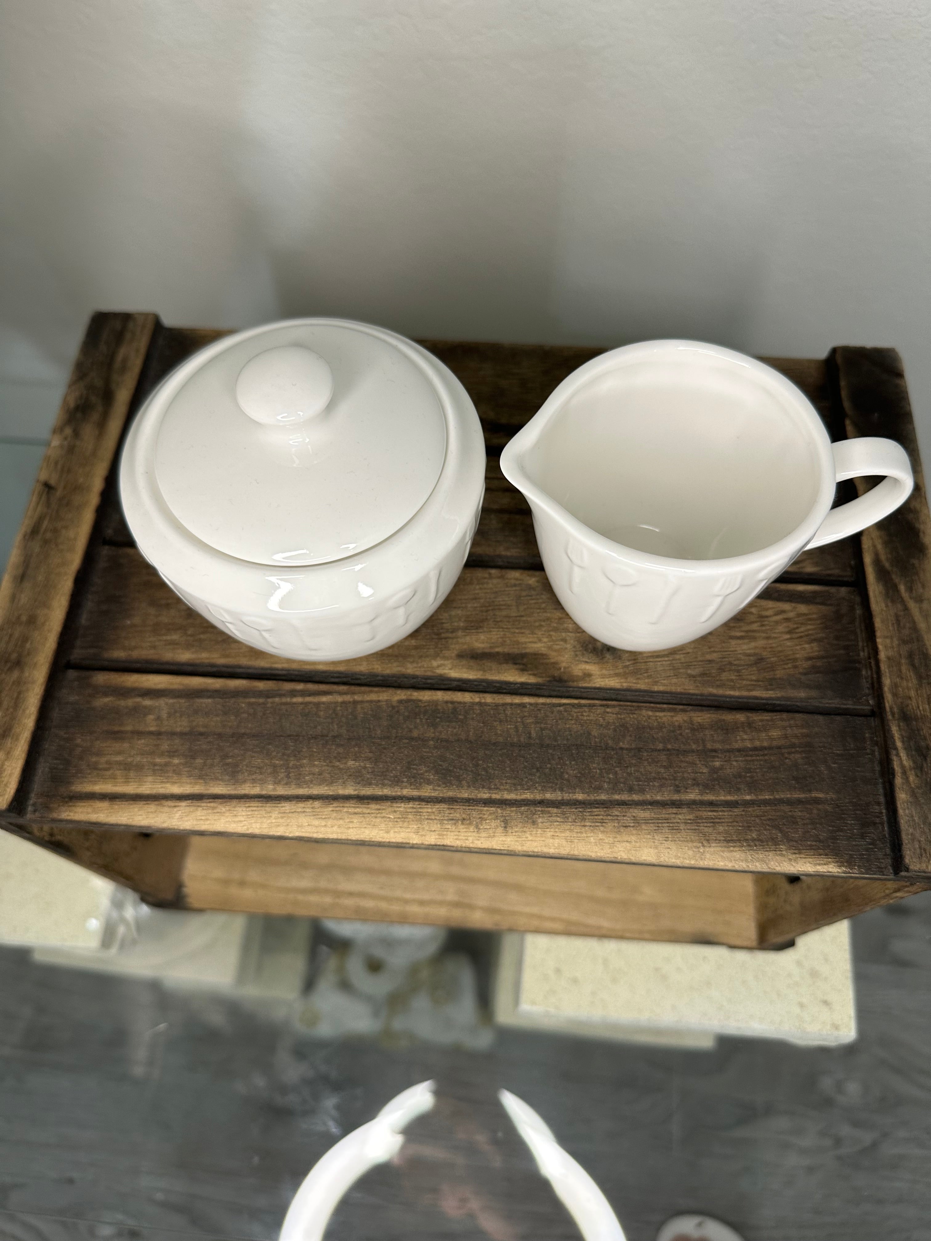 White Porcelain Creamer and Sugar Set - Minimalist Drip Design, Shabby