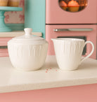 The creamer is perfect for milk, cream, or syrup, while the lidded sugar bowl keeps your sweetener fresh in style. Made of durable, high-quality porcelain, both pieces are dishwasher and microwave safe, making them as practical as they are beautiful.