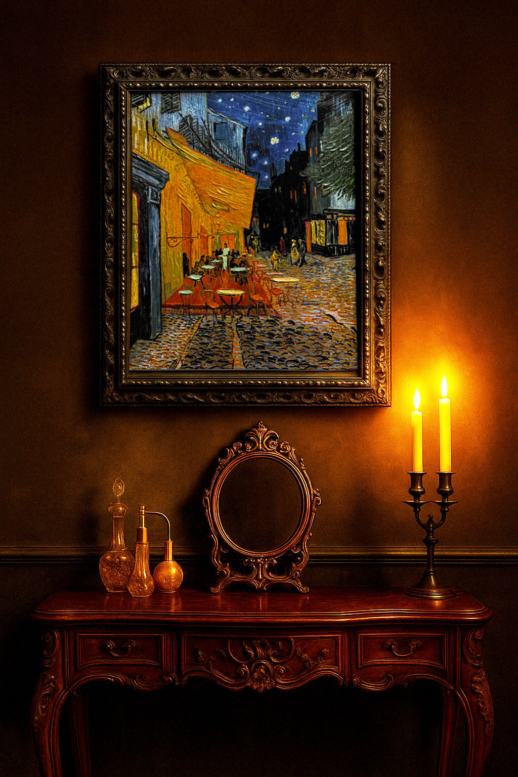 • Textured, hand-embellished reproduction of Van Gogh’s Café Terrace at Night