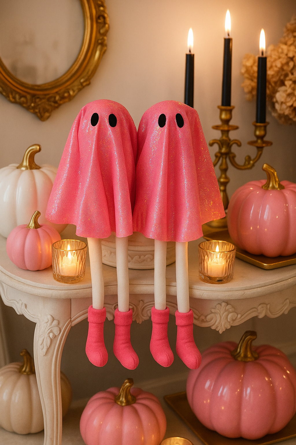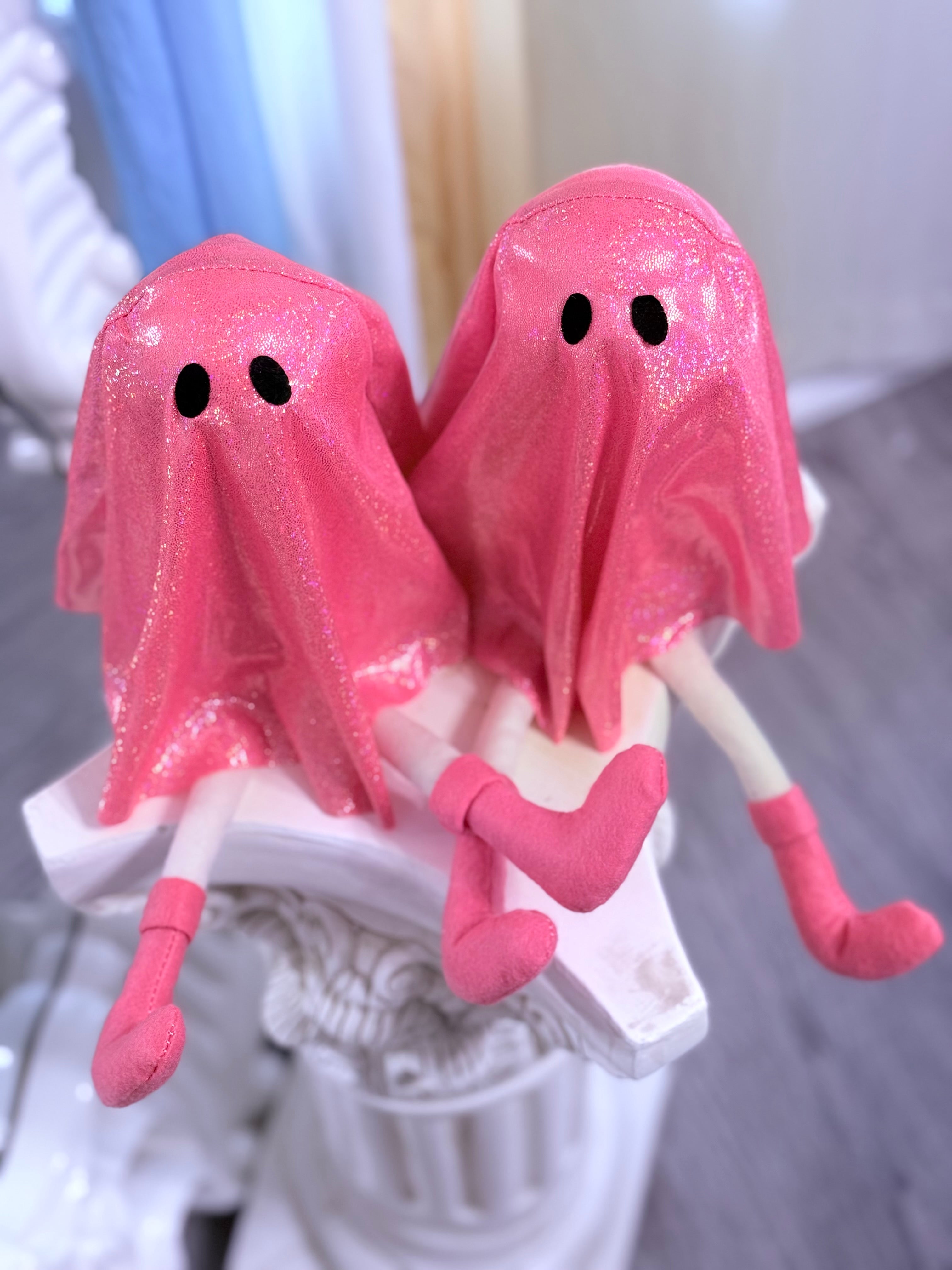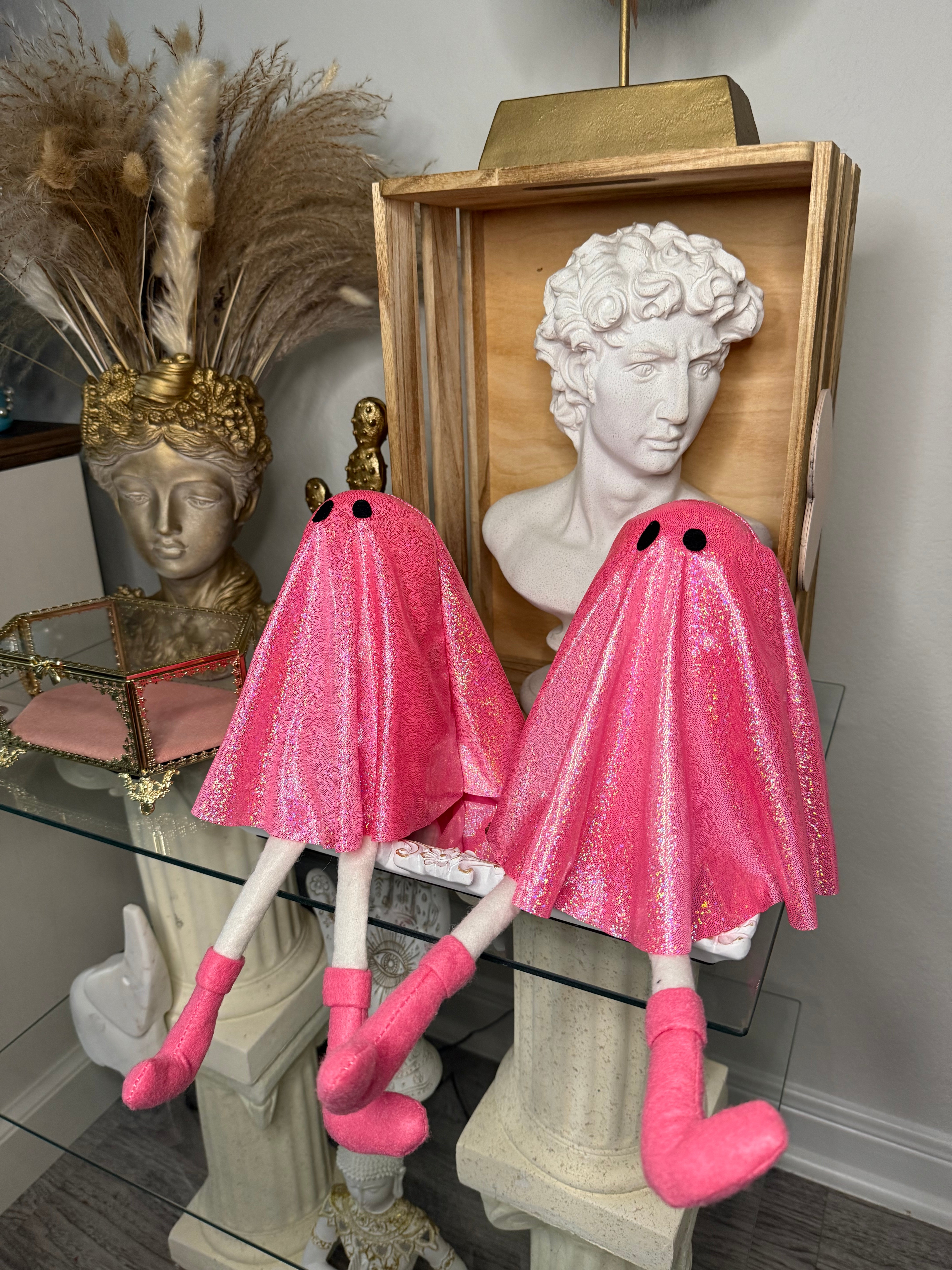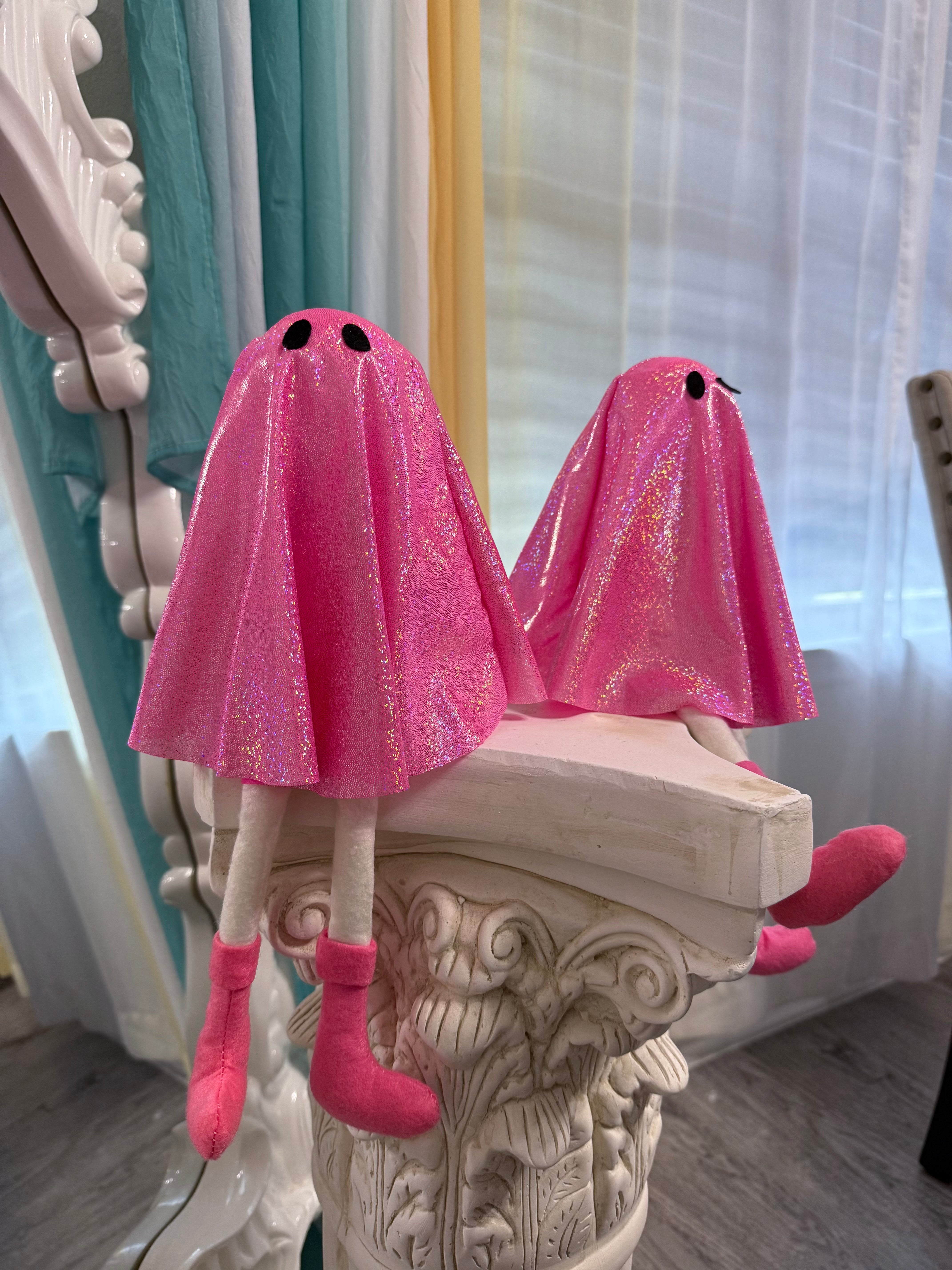 Pink Holographic Shelf Sitting Ghosts - Gothic Halloween Decor Pair