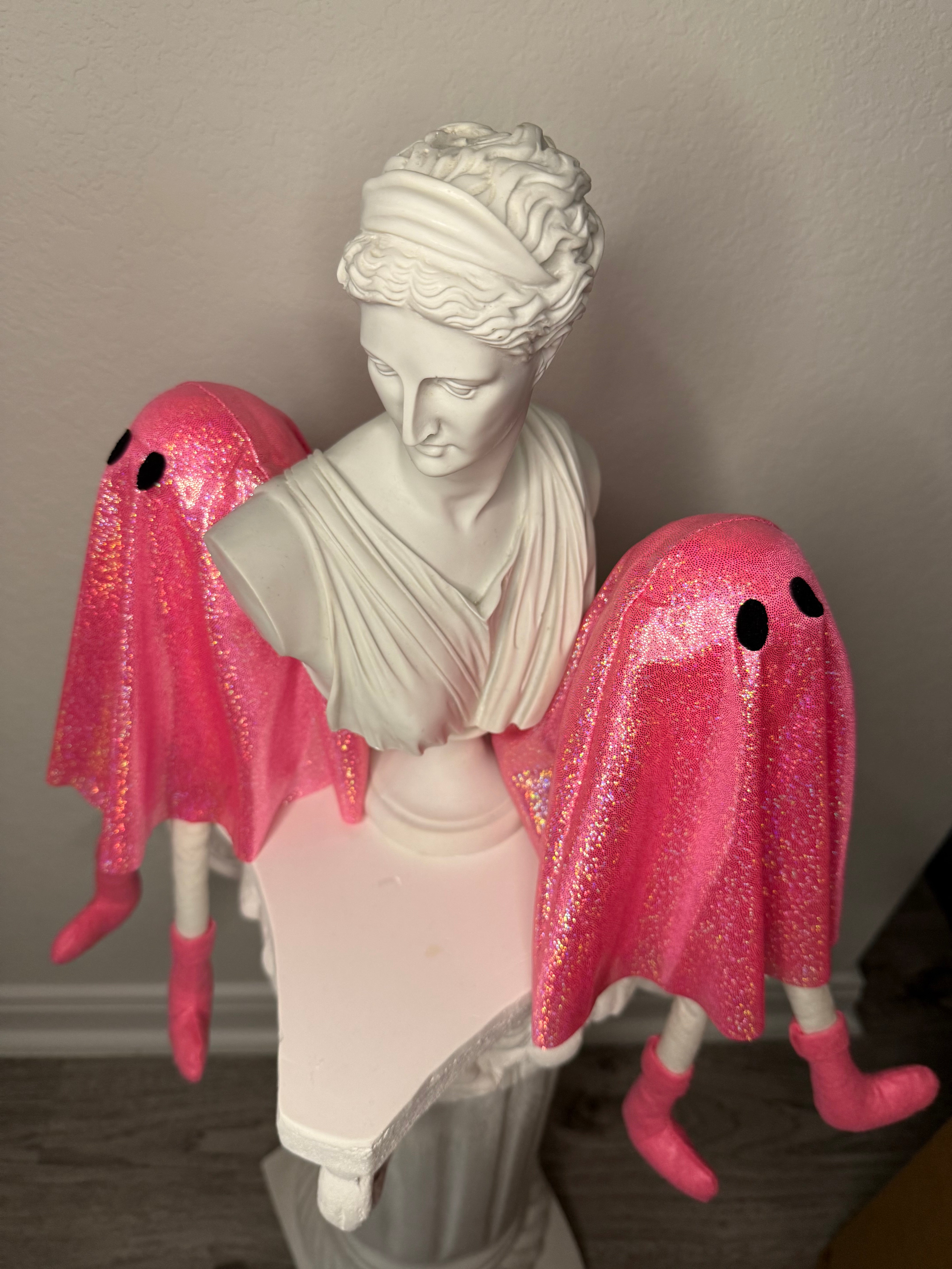 Meet the Pink Holographic Shelf-Sitting Ghosts — a charming duo that brings a touch of whimsy and gothic elegance to your home. Whether you’re curating a magical Halloween display or adding a playful twist to your year-round décor, these pieces capture the perfect balance of cute and mysterious. Hand-selected by Uturn Utopia, where décor meets symbolism and imagination. Details: