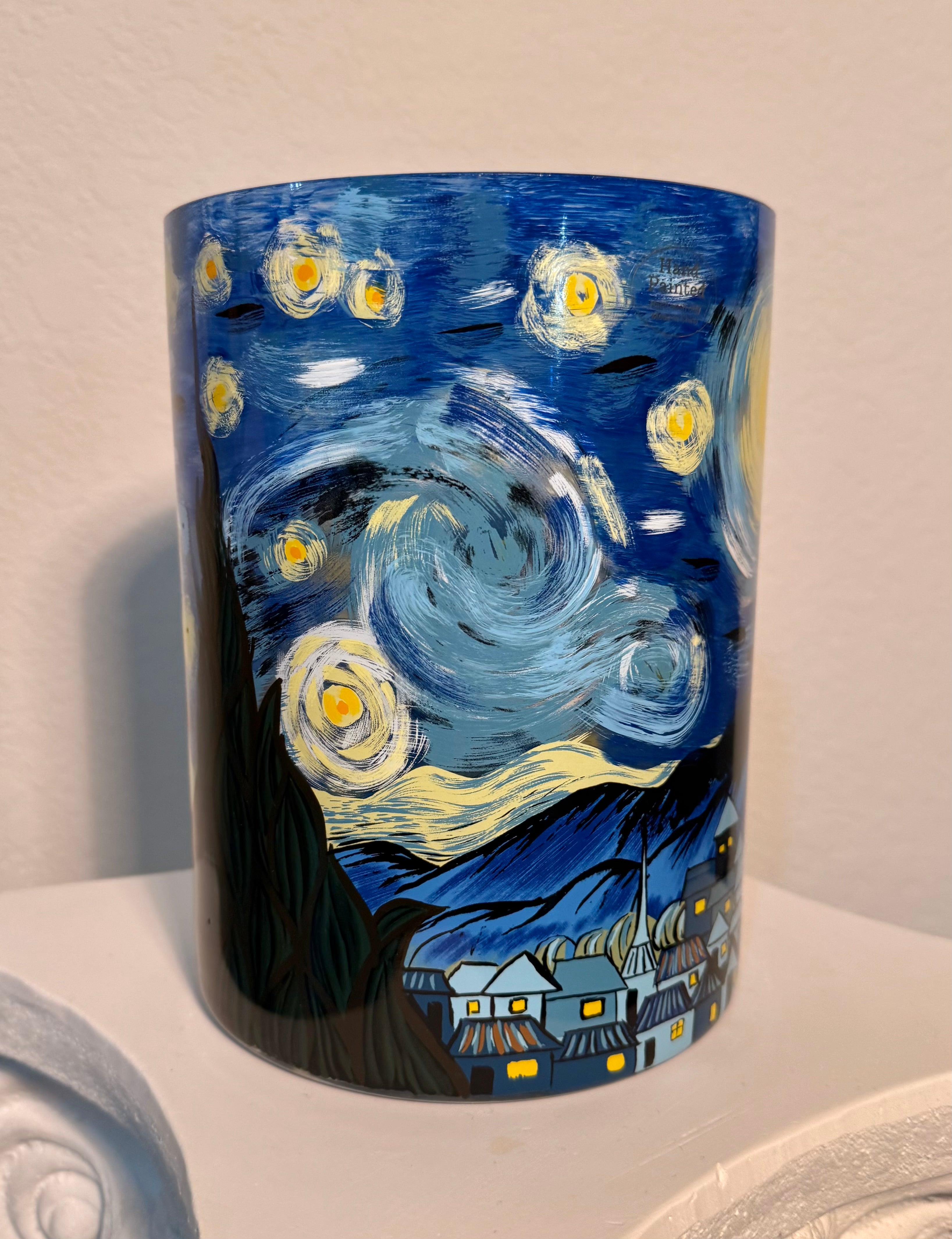 Starry Night Hand-painted Cylinder Vase - Van Gogh Inspired Art Glass