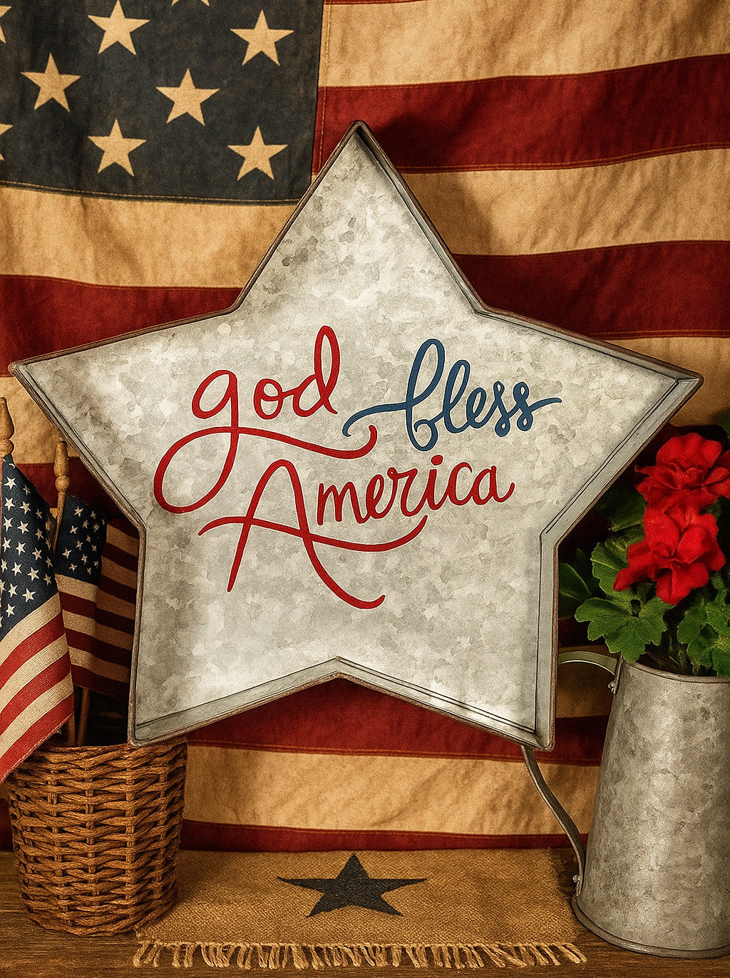 God Bless America Metal Star Tray – Rustic Farmhouse Patriotic Décor
