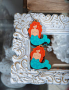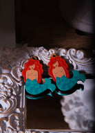 Mermaid with Red Hair & Green Tail Earrings from Laser Cut Wood