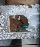 These Laser Cut Wooden Mermaid Earrings are a unique and stylish addition to any jewelry collection. The shabby chic boho design features a red and green color scheme, perfect for adding a pop of color to any outfit. The dangle/drop style and sea-life theme make them a fun and whimsical accessory for any beach or ocean-inspired look. Made from wood, these earrings are lightweight and comfortable to wear, making them perfect for all-day wear. The hook closure ensures easy wear and removal. Approximately 2" long |