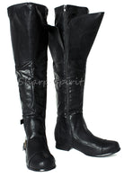 Thigh high boots with decorative buckles and full side zipper closure. Size Large is Approximately 23 5" long, Calf Area Approximately 17" at the widest part.