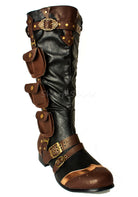 Steeped in steampunk fantasy, these brown 3-pocket boots blend rugged craftsmanship with imaginative flair. Detailed with straps, brass studs, and small utility pockets, they’re perfect for explorers, inventors, or Victorian-era adventurers. A statement piece for cosplay, festivals, or collectors of cinematic footwear.