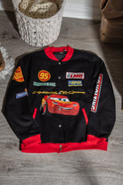 The Disney Lightning McQueen Cars Jacket is a whimsical and colorful outerwear piece perfect for any fan of the popular animated movie franchise. Featuring a varsity jacket style and patches of Lightning McQueen and other beloved Cars characters, this jacket is sure to make a statement. Made by Disney in juniors regular fit, this multicolor jacket is designed for ladies who love both fashion and Cars. Ideal for casual outings or adding a touch of fun to any outfit, this jacket is a must-have for any Cars enthusiast.