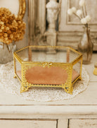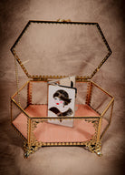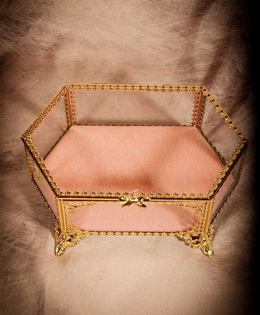 Hexagon Vintage Gold Bow Jewelry Box - Glass & Velvet Victorian